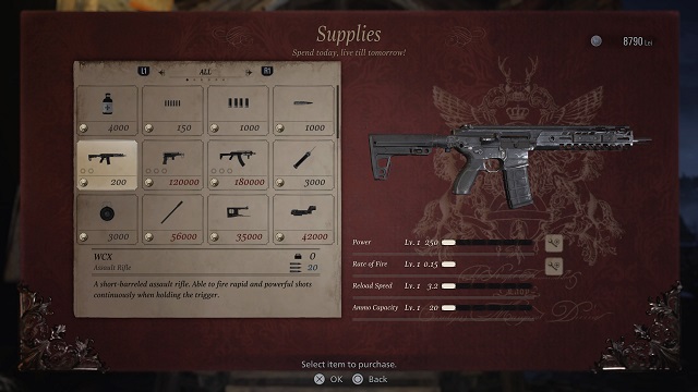 With the weapon purchased, boot up your save and hightail it to Duke’s Emporium, where you’re going to purchase the WCX for 200 Lei, as well as the recipe for rifle ammo for 10,000 Lei. Both are available under the “Supplies” section.