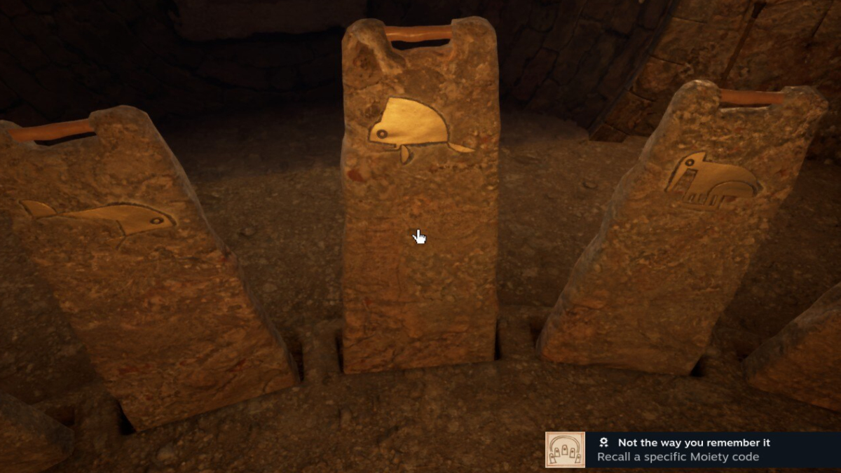 - Not the Way You Remember It (Missable): You must enter the animal combination from the original Riven by raising five stones in a specific order. The code from the original game is Fish, Beetle, Frog, Sunner, and Whark.