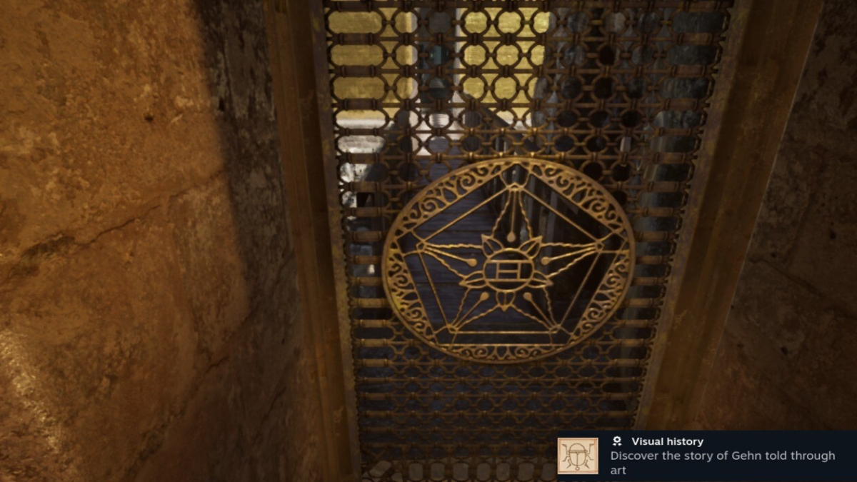 - Visual History (Missable): Look inside all the golden beetles in the rotating room to learn the story of Gehn told through art.