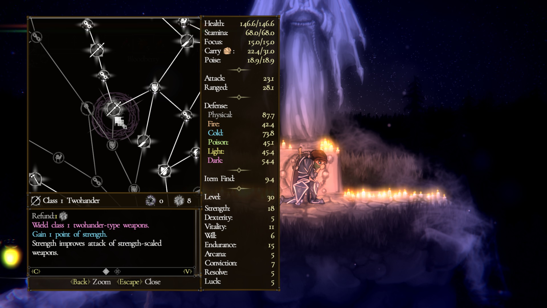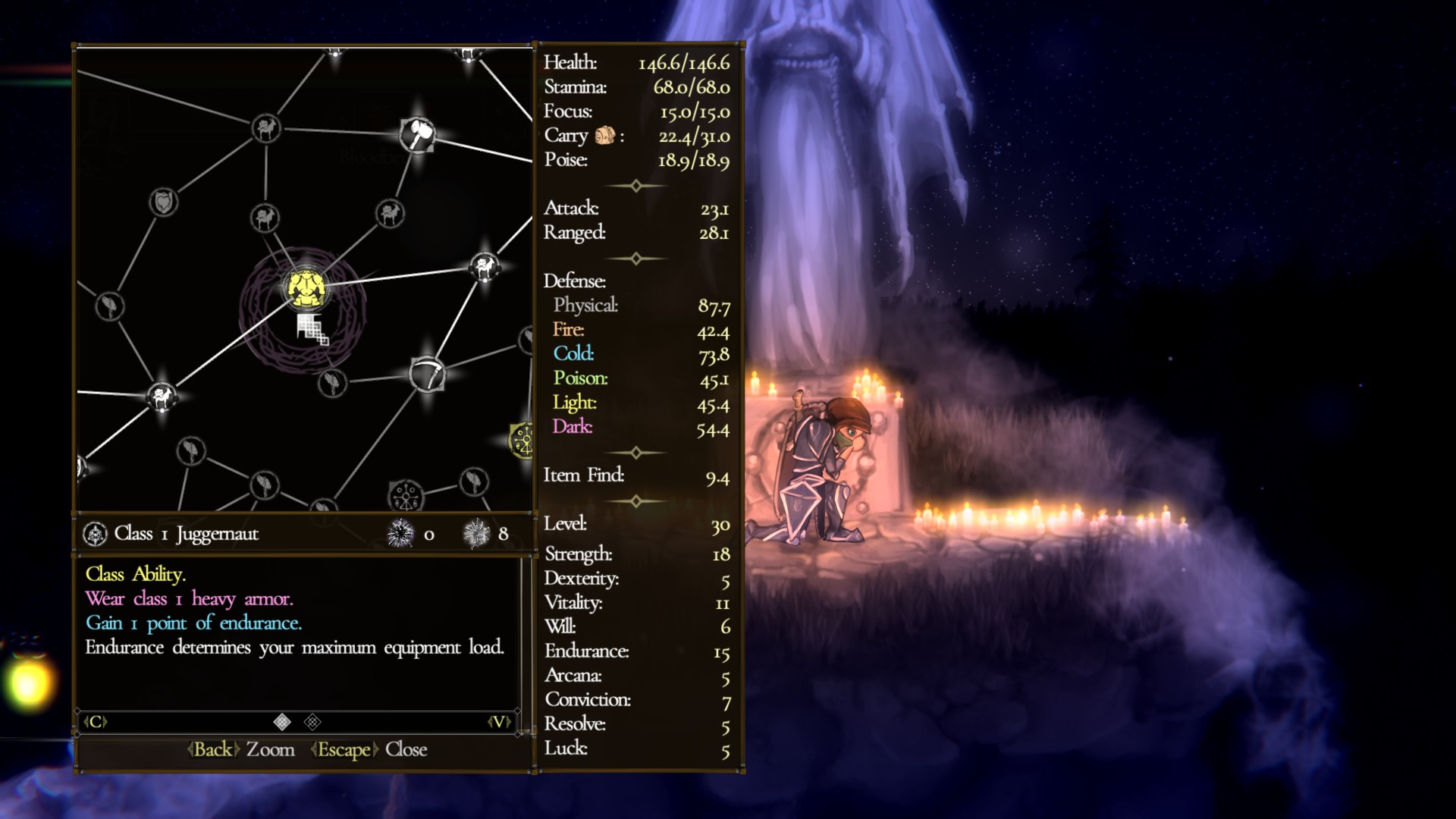 Salt and Sacrifice borrows mechanics from across genres. Its take on equipping gear comes straight out of Final Fantasy XII, as beginning characters simply can’t equip the better weapons and armor. You must manually unlock the ability to do so.