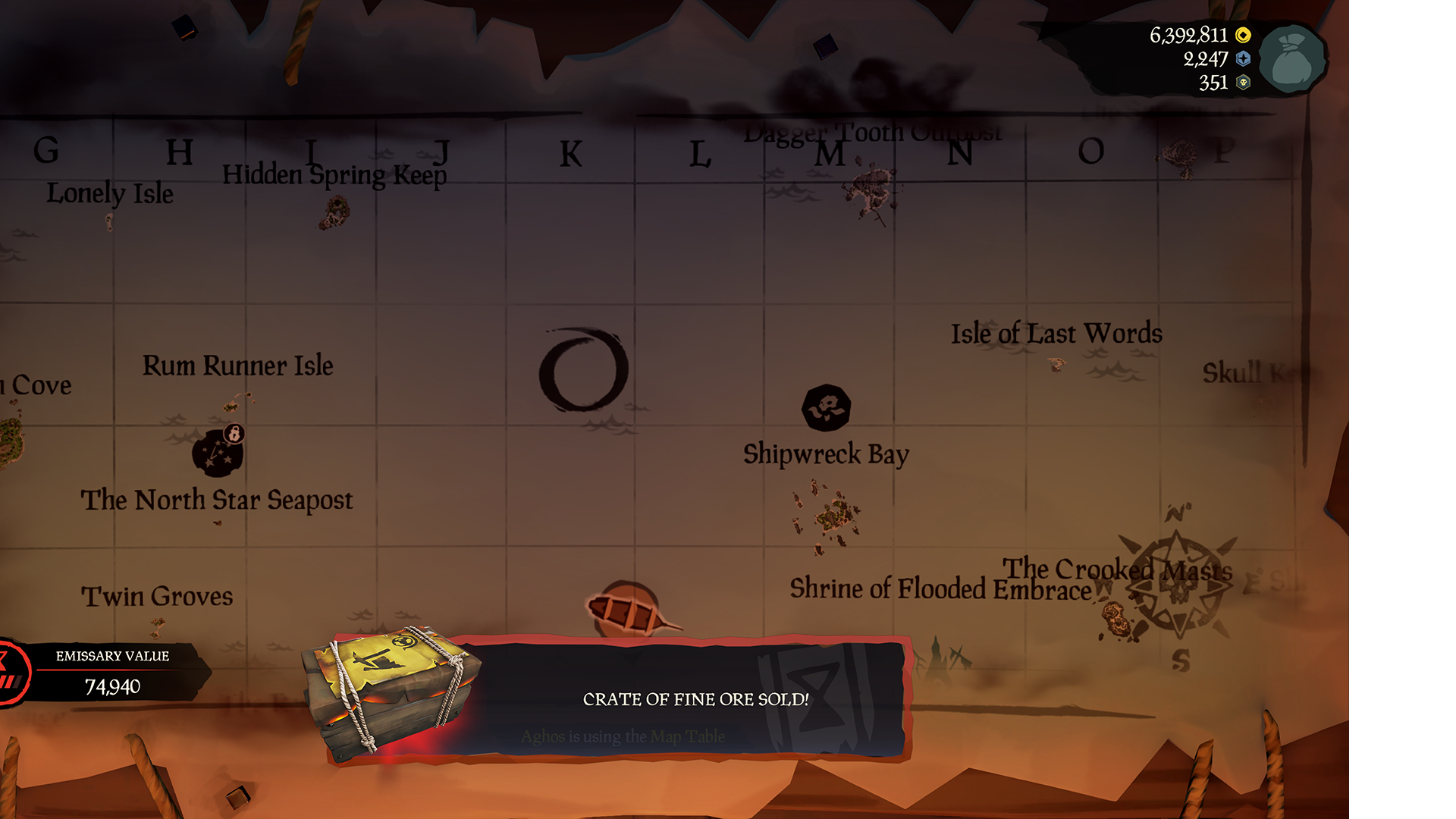 As with other Adventures you begin your journey by speaking to Larinna at one of the many outposts throughout the Sea. Select the option to Begin Adventure, and she will fill you in on the grisly details and ask you to investigate Stephen’s Spoils, a small Seapost at L12 and Merrick’s normal hangout spot, for clues.