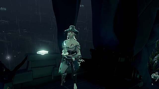 Once you’ve done that, the Pearl will emerge from the water near you. Swim over and use the ladder to climb aboard. Jack will give a farewell speech, and you will rifle through his belongings.