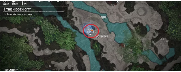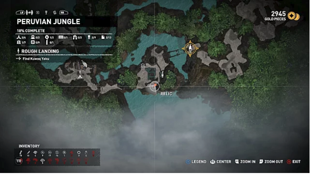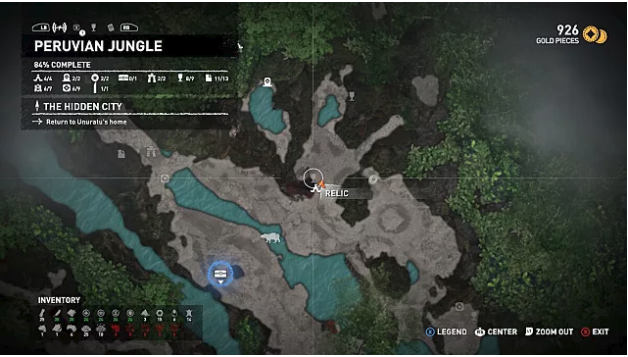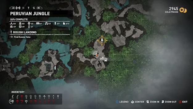 After unlocking fast travel in Kuwaq Yaku, return to the original plane crash site and jump down into the river to reach the western side of the Peruvian jungle. Head to the northwest area and use your axe to break down a wall and enter the crypt. The relic is on the ground near the entrance right next to an ancient corpse.