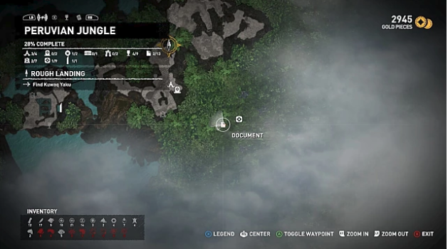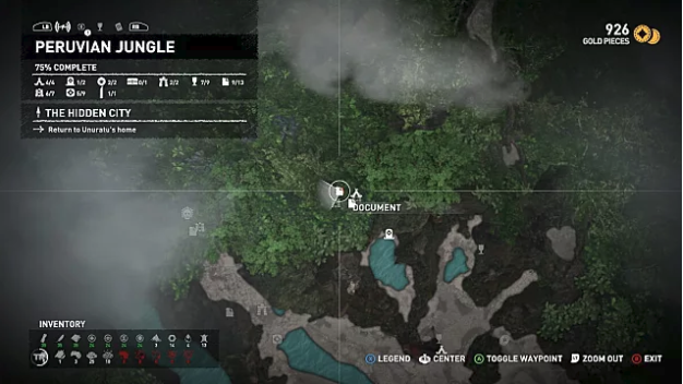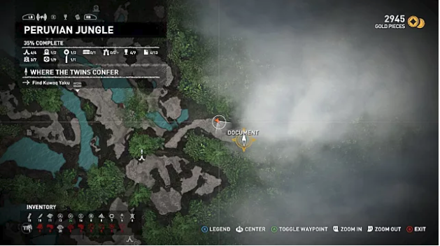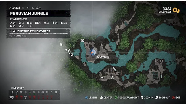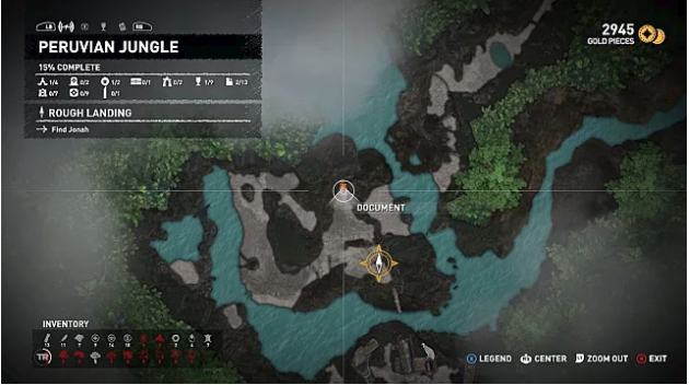 The final Peruvian Jungle document is in a hidden cave right next to the area’s only treasure chest. Getting there requires going down a cliff face that isn’t easily visible. To see the exact location, check the Treasure Chest section below.