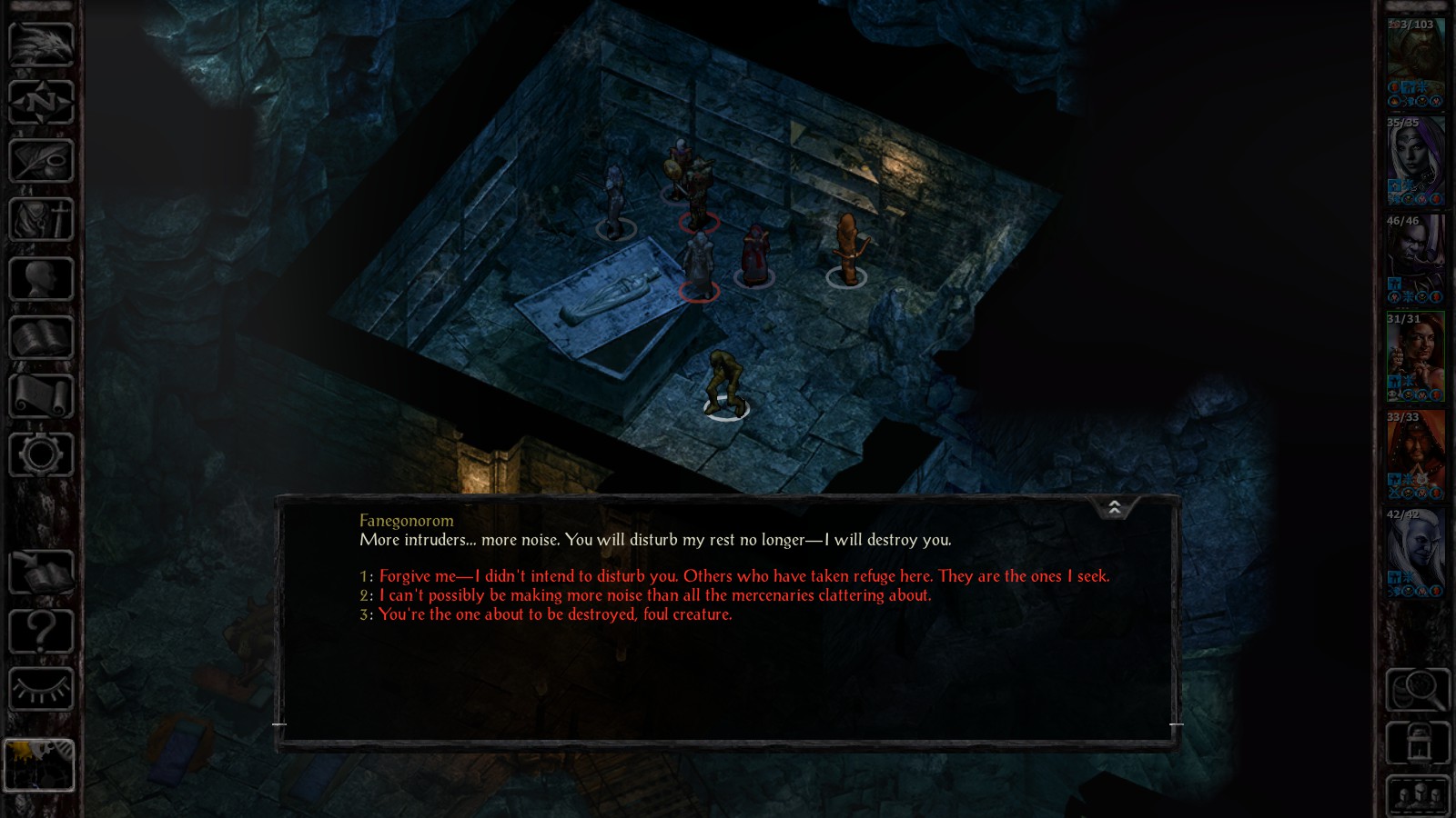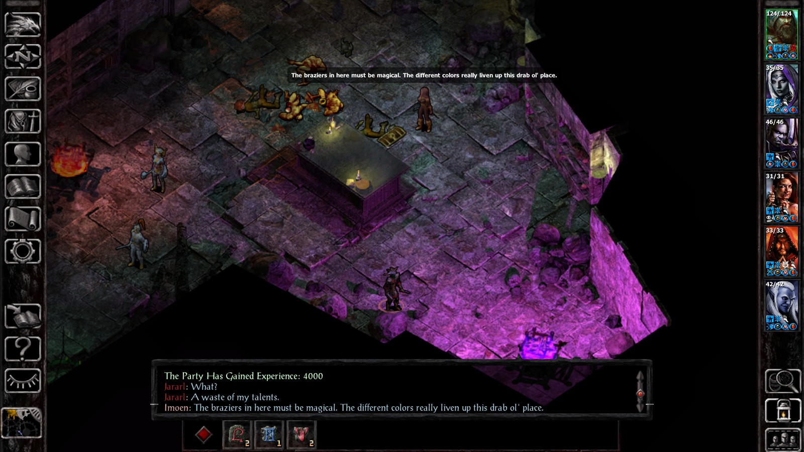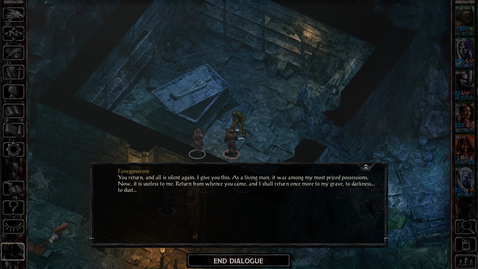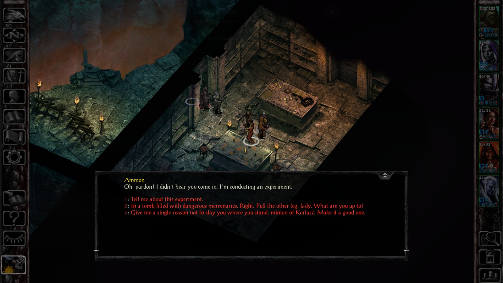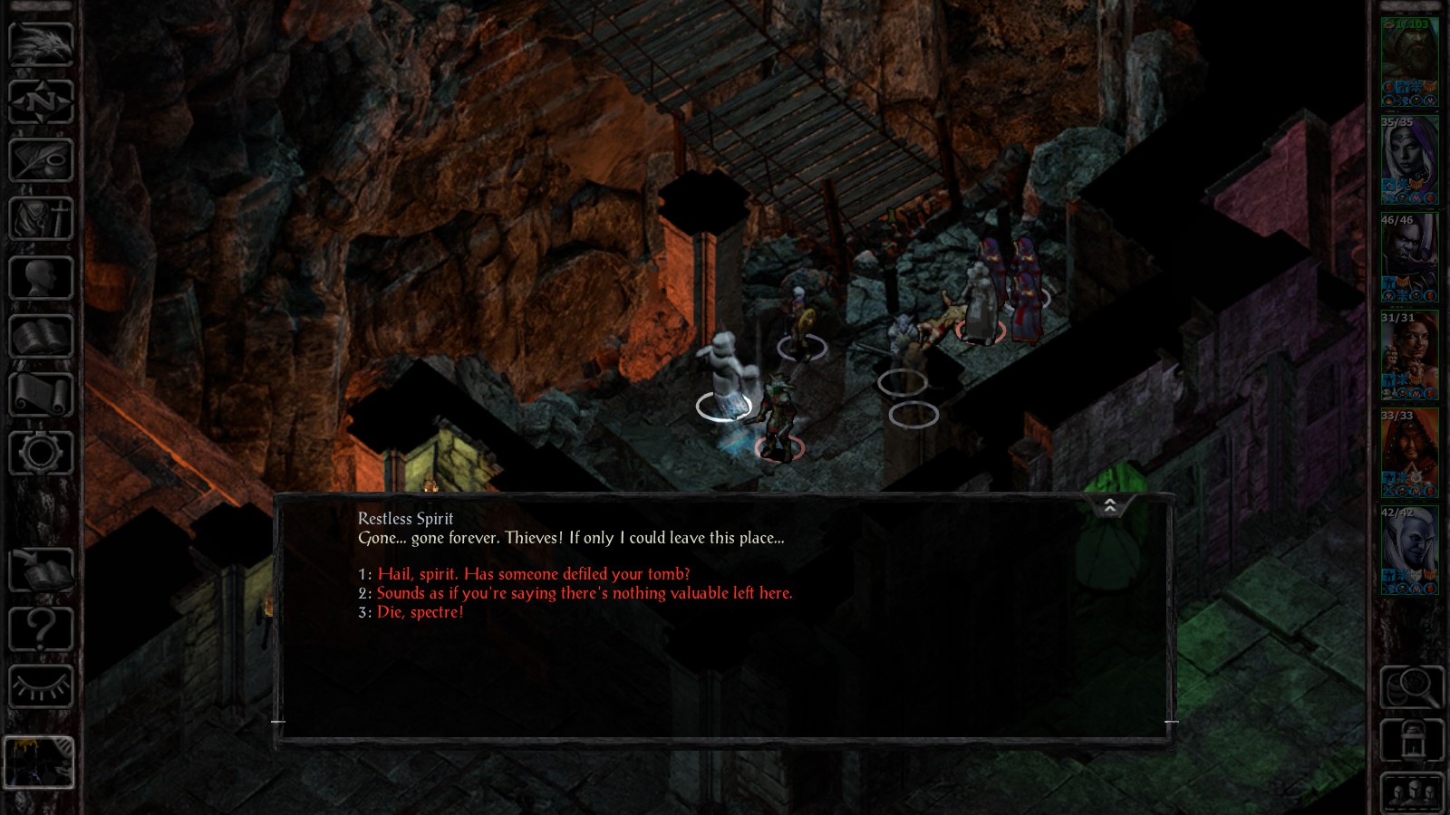 This in-between tale that takes place between Baldur’s Gate and Baldur’s Gate 2 kicks off in Korlasz’s Tomb. Here you the have the opportunity to get reacquainted with the old ruleset and user interface while stomping some undead and taking down Sarevok’s last follower.