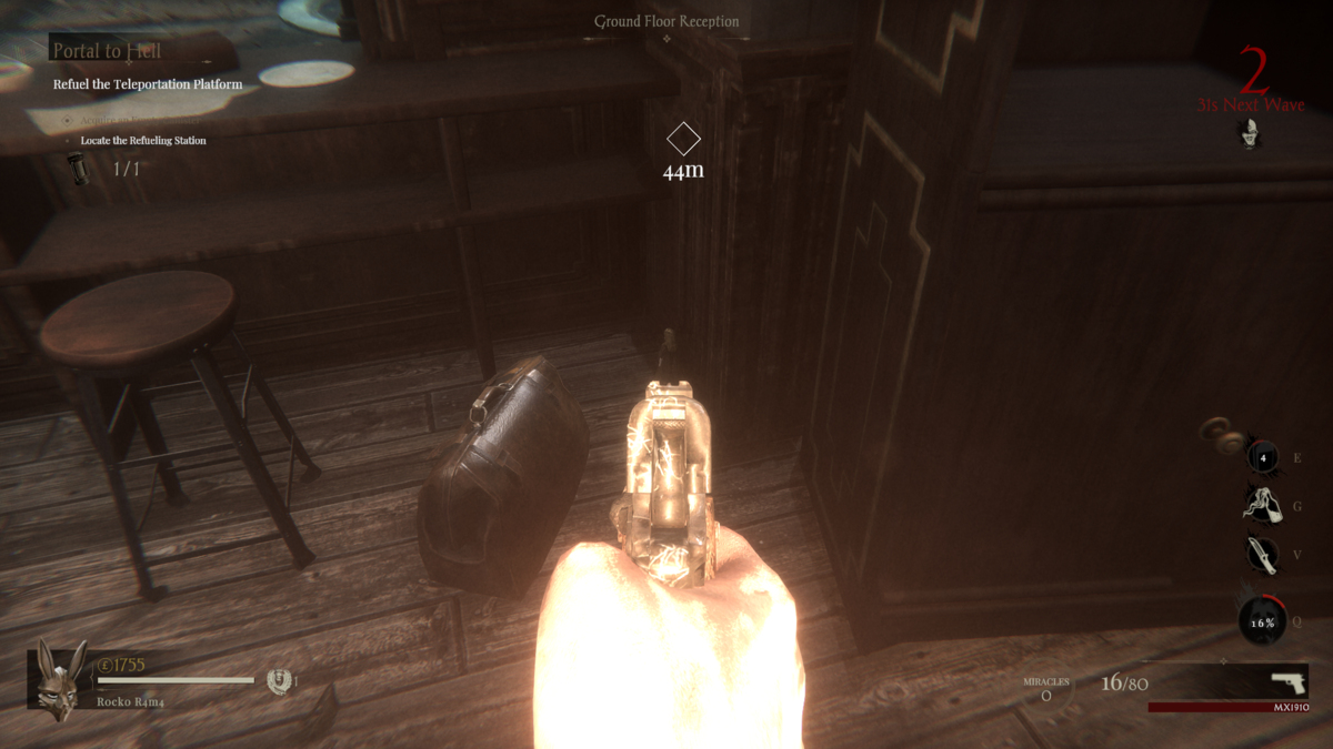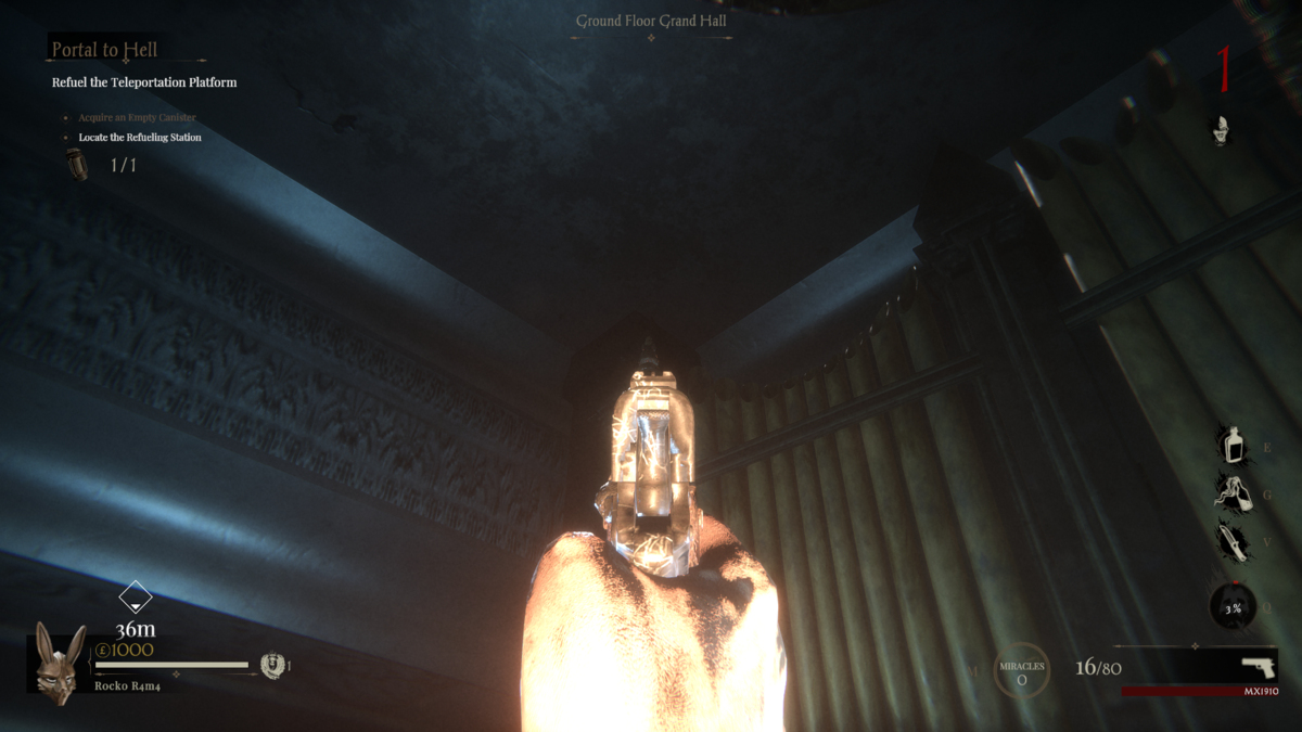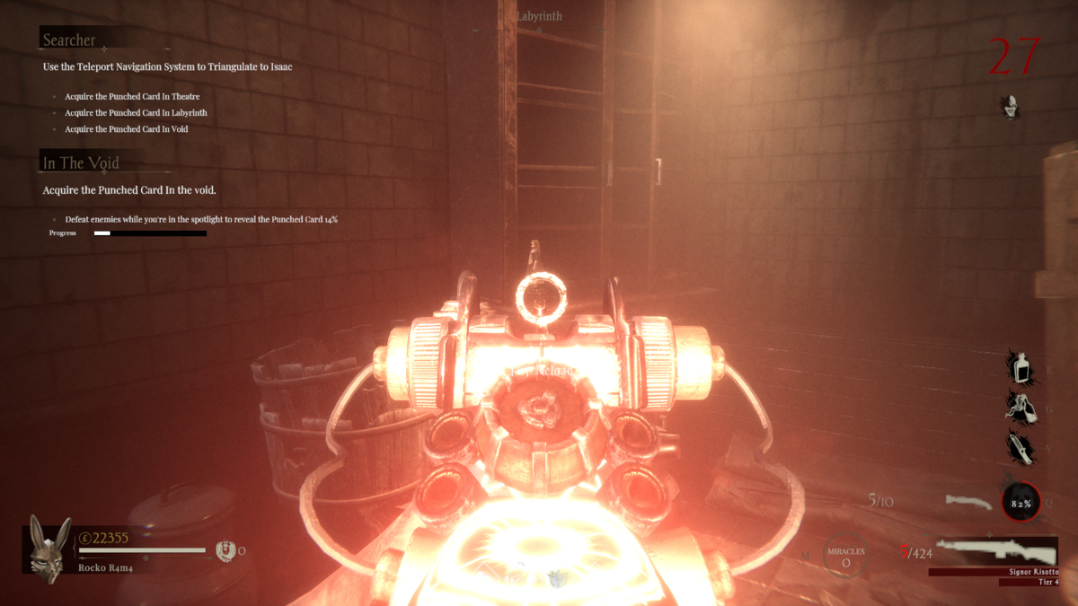 You cannot reach this doll’s location until you activate the portal in the Ground Floor Grand Hall area. Once inside the theater, face the stage and look up to your right. You’ll find it sitting on the wooden beam that covers the length of the stage.