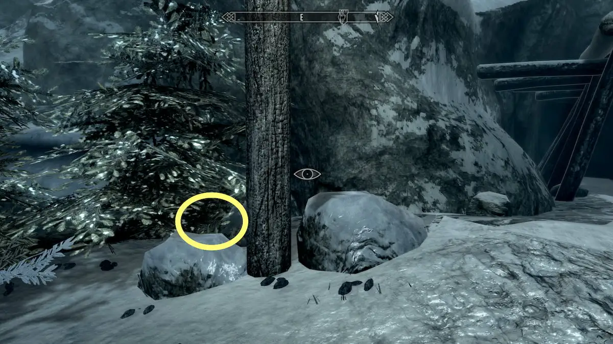 The first chest can be found in Dawnstar, so fast travel there to save on some walking. Once you’re there, take the first right and follow the path past the Wind Peak Inn and The White Hall. Follow this path straight until you spot some wooden carts and a smelter to your right. You should see a mine in front of you.