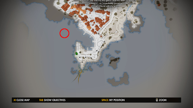 For your first Stone Eagle of the Bitanti Village mission, go left along the coast from mission start. As you go through the ruins along the coastline, you’ll quickly go up a flight of stairs. When you reach the top, look left (out into the bay) to see a boat in the distance. Zoom in with your sniper rifle to find your first Stone Eagle sitting on the aft of the ship.