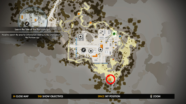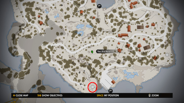From Stone Eagle 2, go down onto the main road and take a right. Head toward the villa on the hill, where you’ll find you main objective, “Kill Capo.” If you haven’t already cleared this area out, you’ll have dozens of Nazi guards and soldiers to contend with. But when you do clear them out, the next Stone Eagle is arguably the easiest to find in the game.