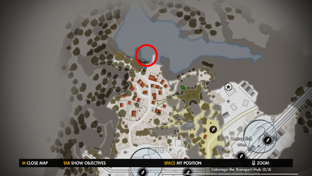 At mission start, immediately make a 180 and look out over the bay behind you. Across the water, on the far side, look for a blue boat along the water’s edge. Inside the boat you’ll find your first Stone Eagle of the Kill Hilter DLC mission.
