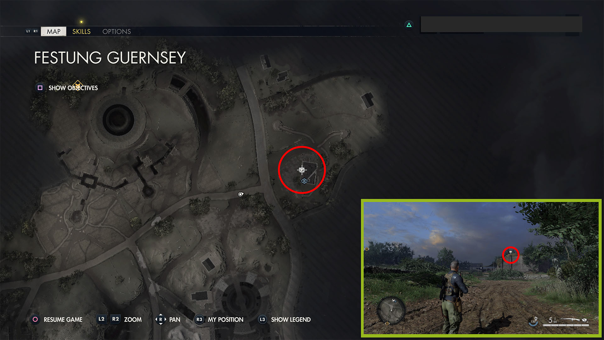 There are 19 more collectibles to find in Sniper Elite 5‘s fifth level, Festung Guernsey, as well as two additional starting locations. Unlike the previous two levels, Mission 5 returns to the more open and expansive structures of The Atlantic Wall and Occupied Residence.