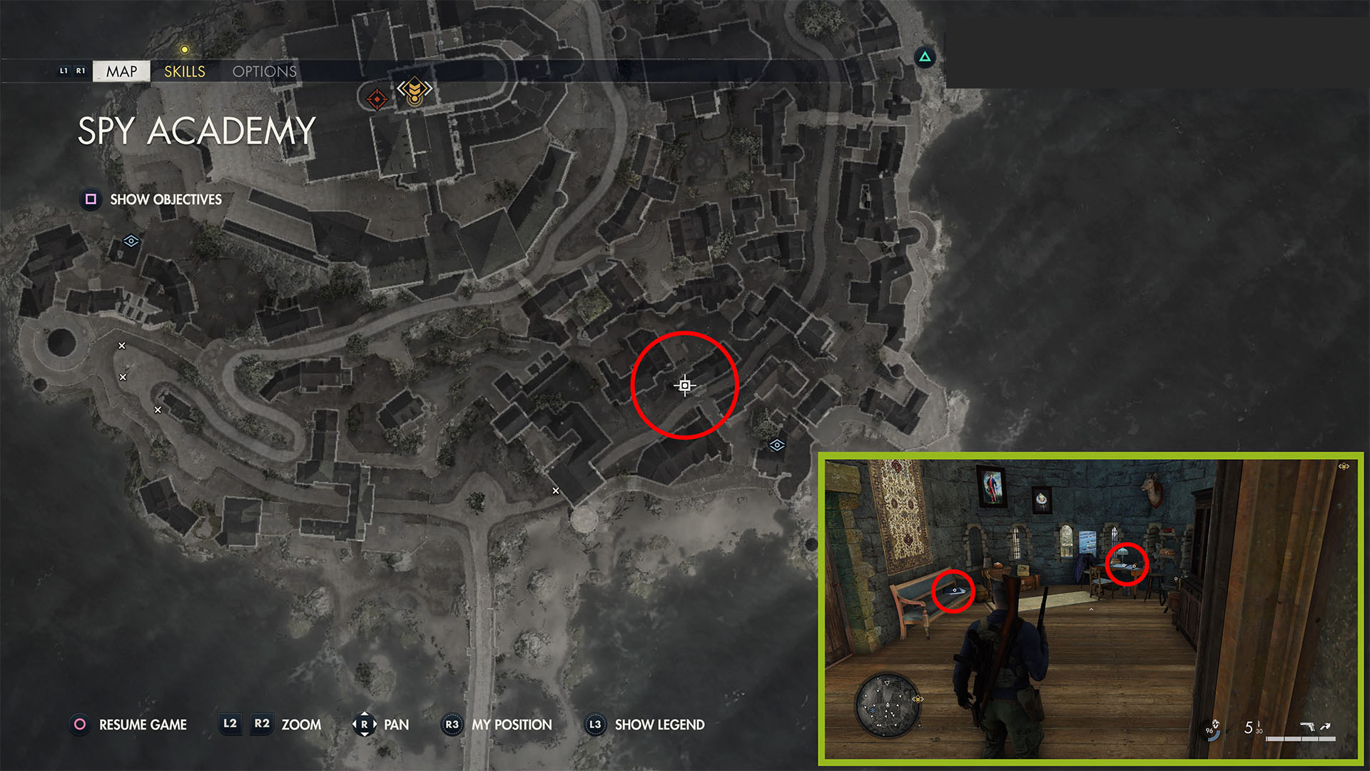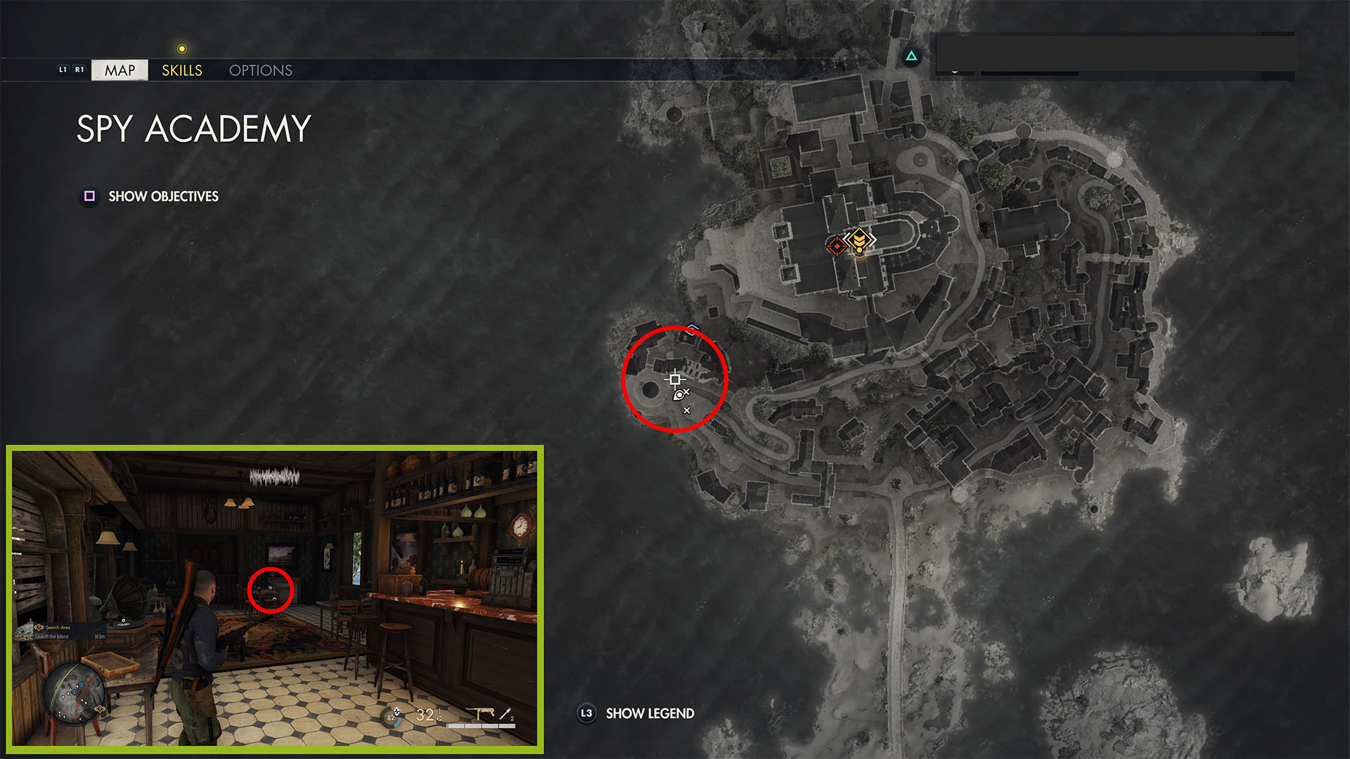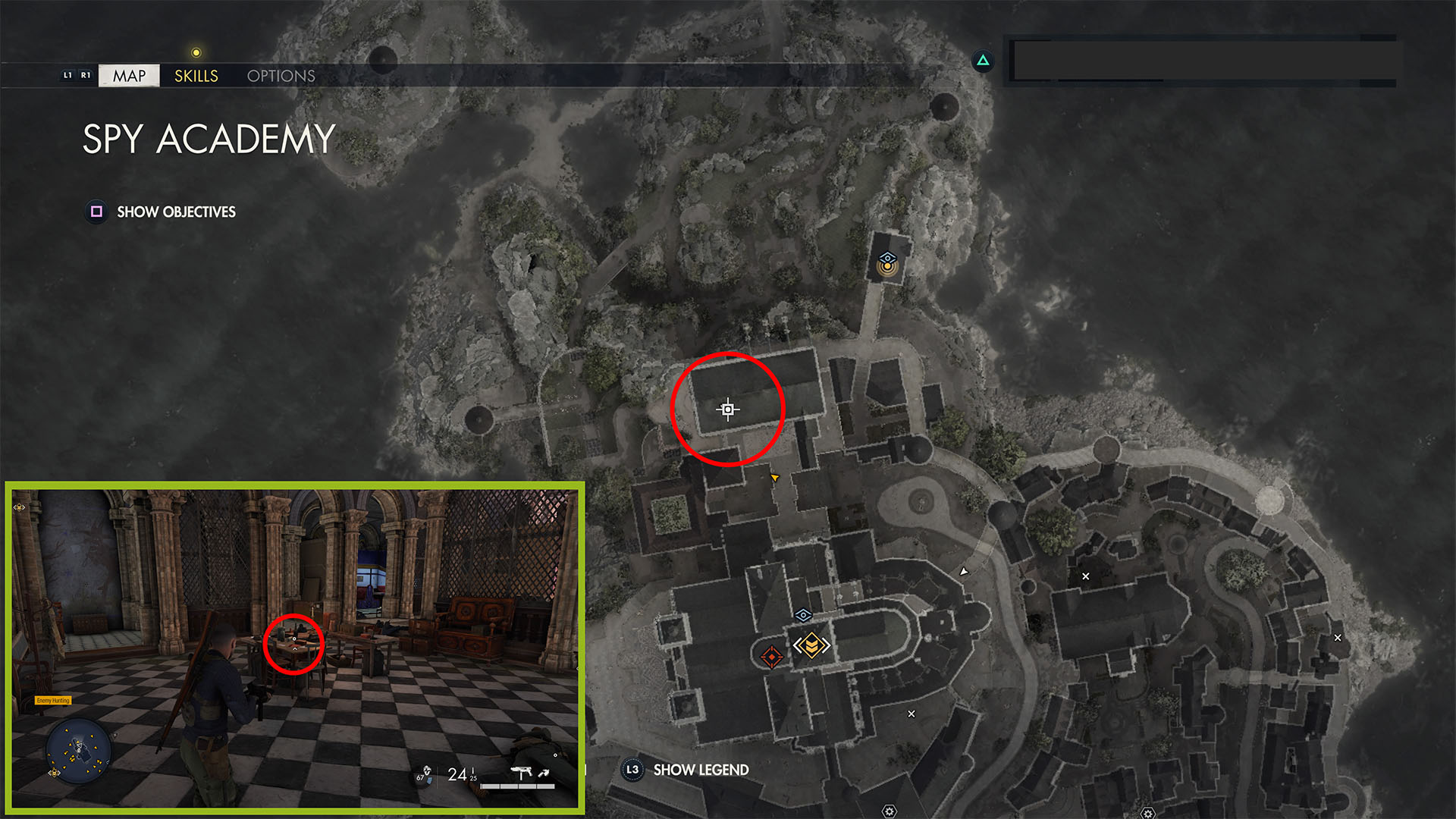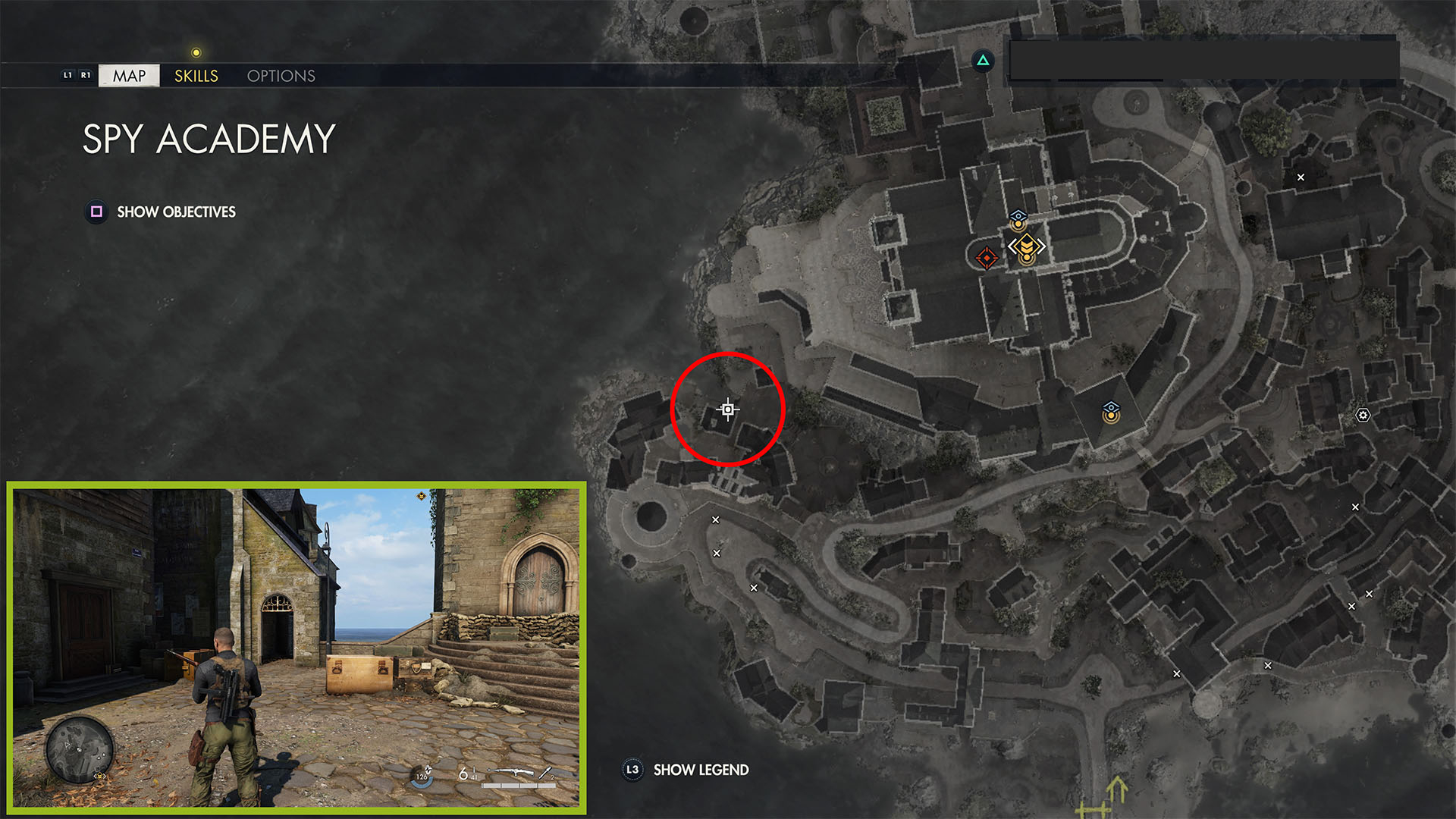 Spy Academy is perhaps Sniper Elite 5‘s most intricate and confusing level. Finding all of the classified documents, hidden items, letters, and workbenches in the Nazi-riddled labyrinth that is Mission 3 can be a test of will and patience. Luckily, the stone eagles are fairly easy to find and there are only two starting locations to discover, one on each side of the island.