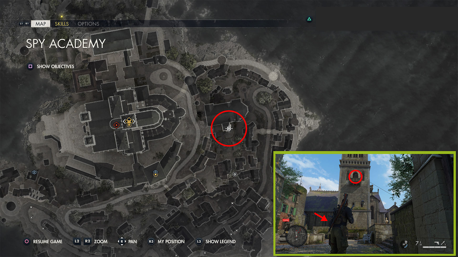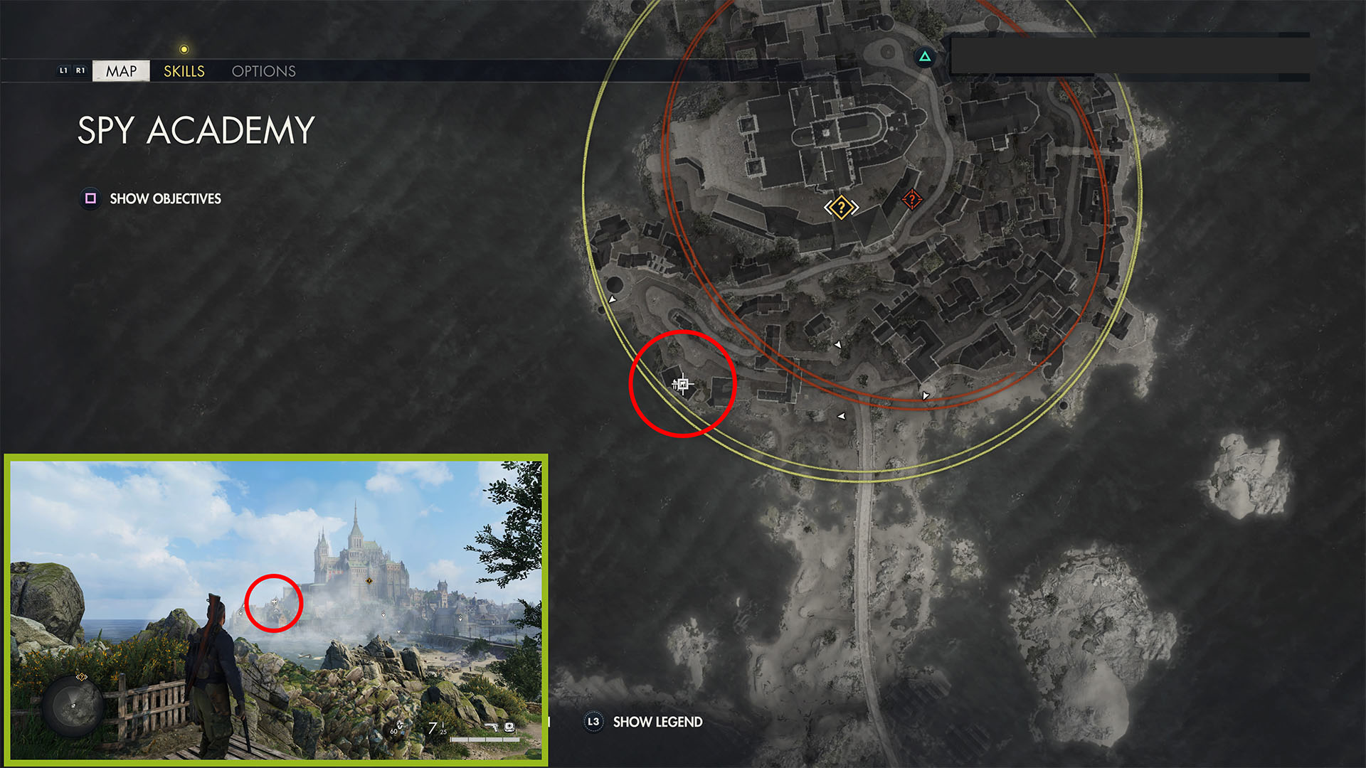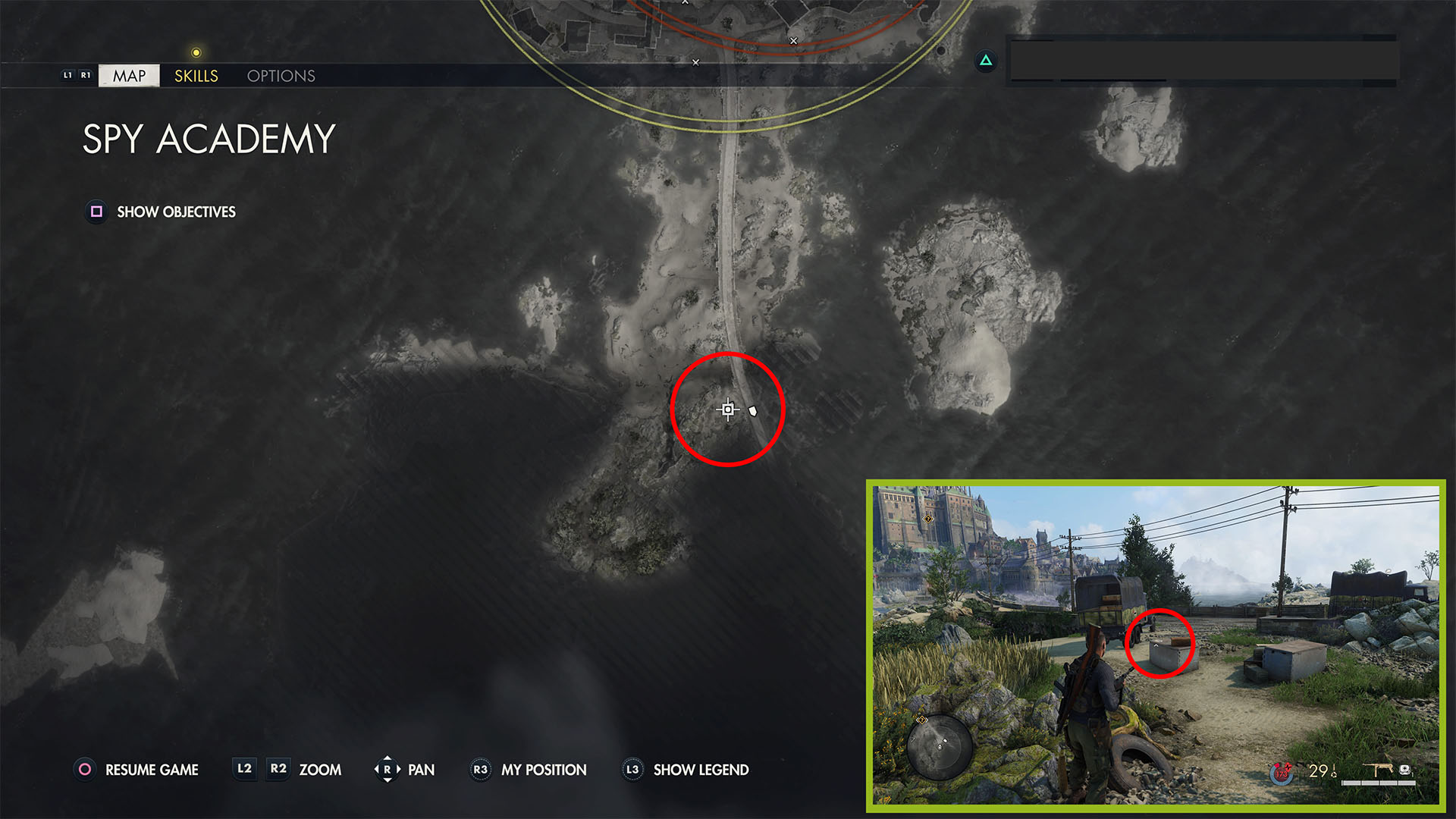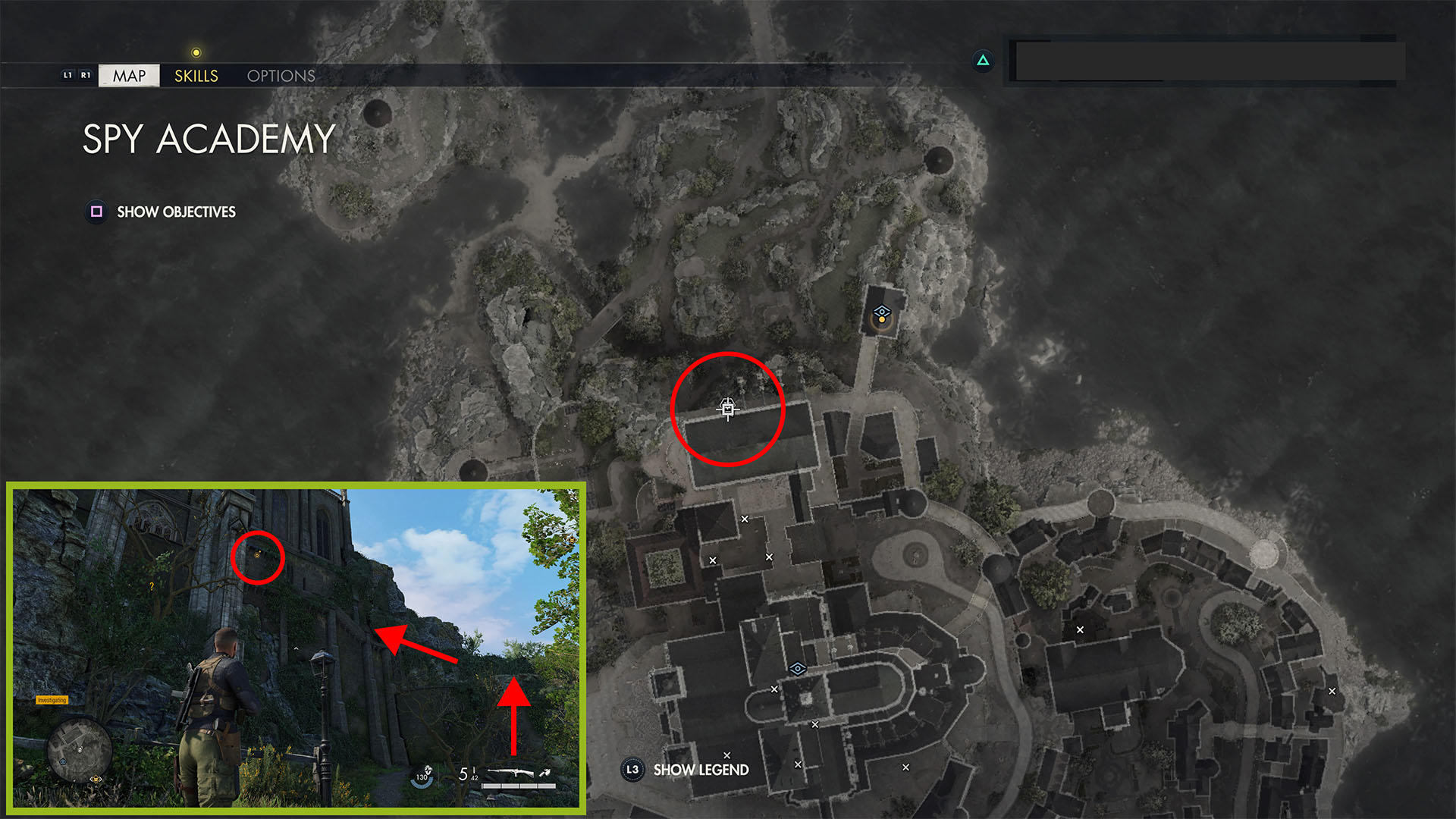 Spy Academy is perhaps Sniper Elite 5‘s most intricate and confusing level. Finding all of the classified documents, hidden items, letters, and workbenches in the Nazi-riddled labyrinth that is Mission 3 can be a test of will and patience. Luckily, the stone eagles are fairly easy to find and there are only two starting locations to discover, one on each side of the island.