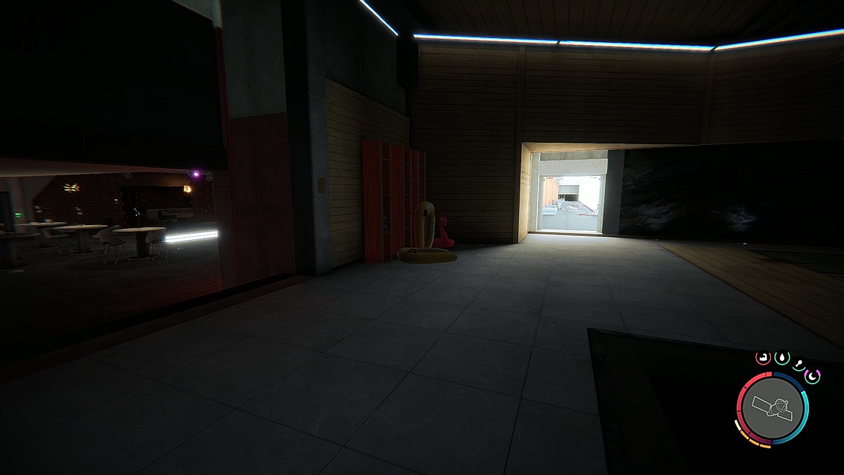 Continue to the Bar/Nightclub area at the far end of the swimming area. You can find the Guest Keycard on the table here. Pick that up, and turn right into the bright hall instead of going into the nightclub.