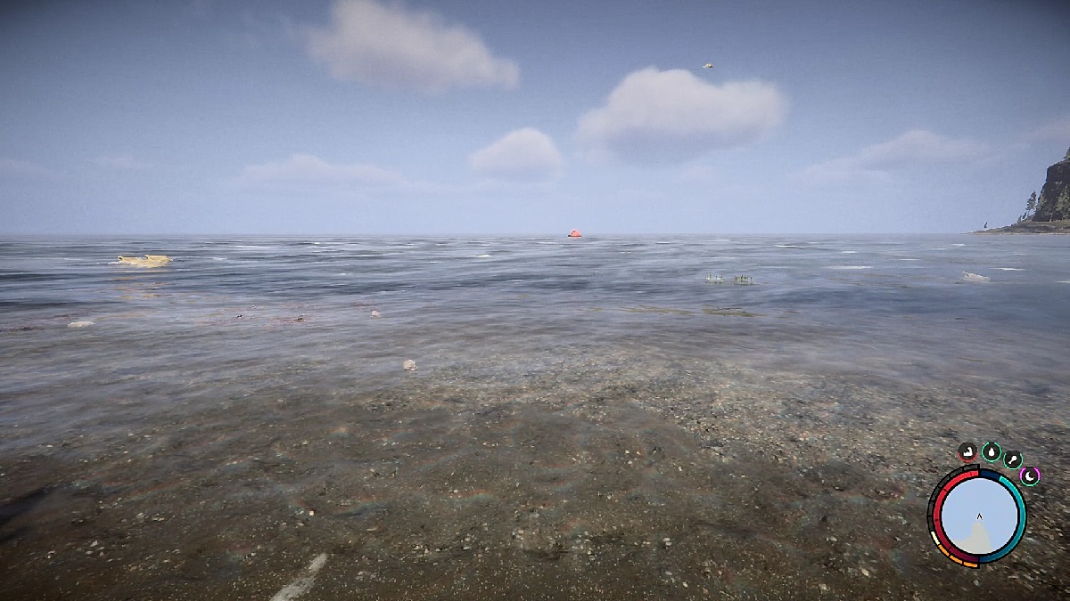 The GPS marker will take you to a beach where you’ll see an orange life raft in the distance.
