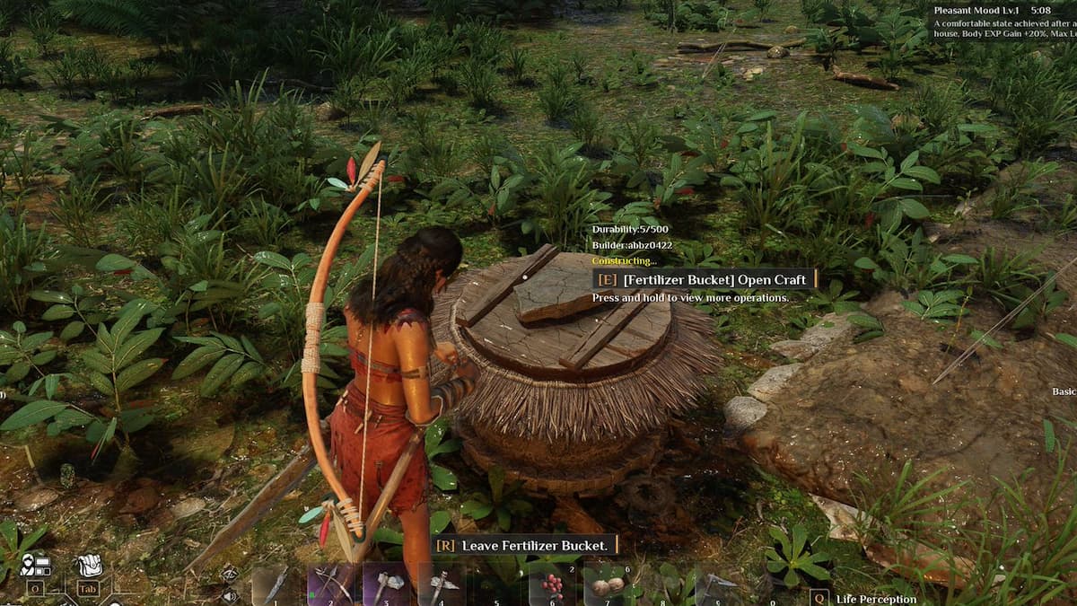 The Fertilizer Bucket can be made with Stone x10, Clay x20, and Plank x10. You can place it anywhere at your camp; it doesn’t need to be right next to your farmland. It’s just where you’ll craft the fertilizer and compost for your crops.