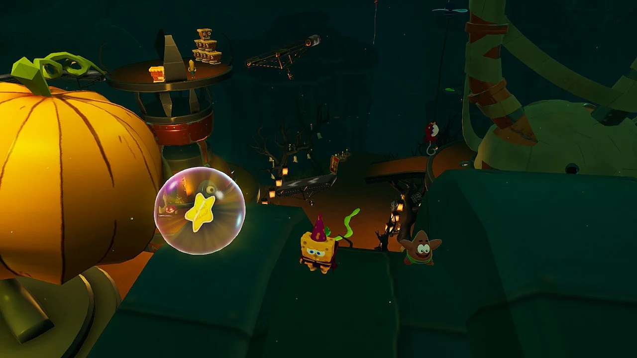 This collectible hunt is one of the side quests you’ll get from the residents of Bikini Bottom in SpongeBob SquarePants: The Cosmic Shake. Mrs. Puff will ask you to find 5 good noodle stars for them. These are all located in the Halloween Rock Bottom. Here’s where to look.