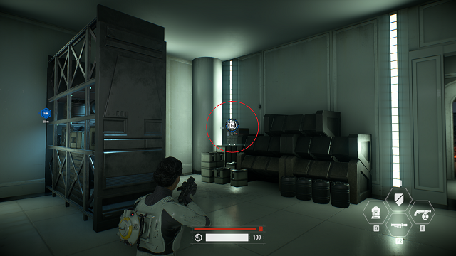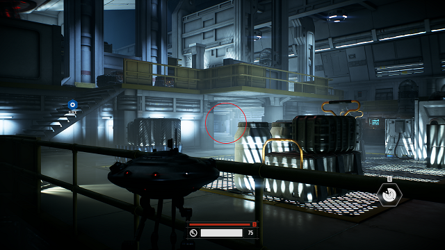 This crate can be found once you’ve exited the ventilation shaft for the second time. Here, you’ll be in a power supply room (you’ll know you’re in the right place because you’ll be able to see into space). Turn right after you enter the room and scan for enemies.