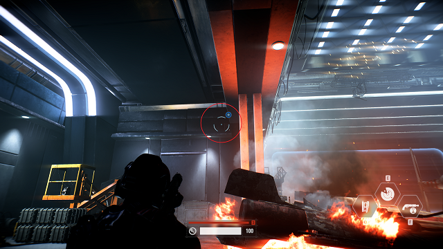 The first collectible in BF2 is in the game’s first playable room. After you’ve gained control of the ID-10, turn to your right and look for a box in the right back corner of the room. Head over to the crate and splice it to get your reward.