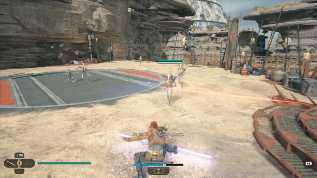 When it comes to which Lightsaber Stances to use, I wound up finding a winning combination in Double-Bladed and Blaster Stance. Though I hadn’t put any points into Blaster, it’s possible to get a good chunk of initial damage on the boss by shooting off your clip when you first drop down. Switching to Double-Bladed allowed me to attack quickly while coming down from jumps, even if it doesn’t do as much damage as some of the other Stances.