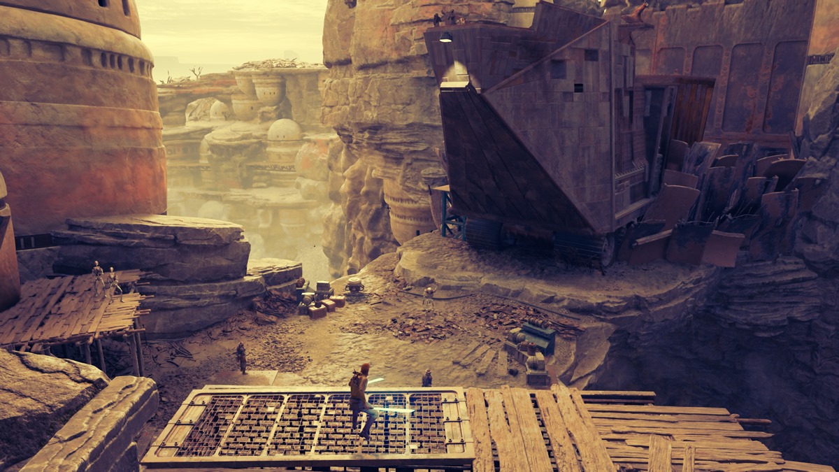 Once you’re done with the Forest Array mission, you’ll get a Nekko mount, which will then lead you to the Bygone Settlement. There’s a Jawa Sandcrawler in the distance, though you won’t be able to go there until much later in the campaign (i.e., after acquiring traversal skills like Merrin’s Charm, Air Dash, and Lift and Slam).