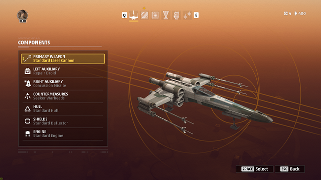 X-Wings are powerful, speedy, and tough; they have the same hull stat as Y-Wings, but increased maneuverability. They stand apart from Tie Fighters because their shields are equipped as their own module.