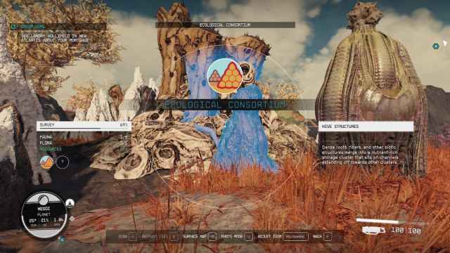 When looking for planets to explore, you want to focus on those with a large amount of flora and fauna. The more you need to scan, the more chances for XP you have to gain. Even if the flora is lower, as long as the planet or moon has many animals you can kill, you’ll gain XP quickly.