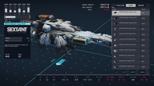 In Starfield, your ship’s hold limit is one of its most important stats if you want to always have room for more loot. Increasing it is an easy task and one you’ll want to do often, depending on what you want to use your vessel for. Adjusting it down is a little more involved, but only in regards to the design of your craft and, again, its purpose. Hauling boats will need more, fighters less, and so on. Here’s how to increase cargo capacity in Starfield.