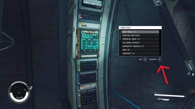 - Approach the Cargo Hold panel on the wall of your ship’s interior near the captain’s chair.
