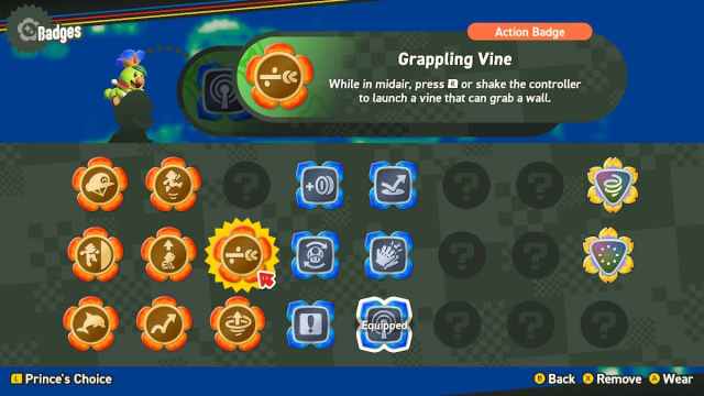 The Grappling Vine Badge lets you launch a vine that can grab onto a wall. It allows you to clear large gaps with ease and you can even use it to climb up walls. This basically lets you become Spider-Man in the Mushroom Kingdom.