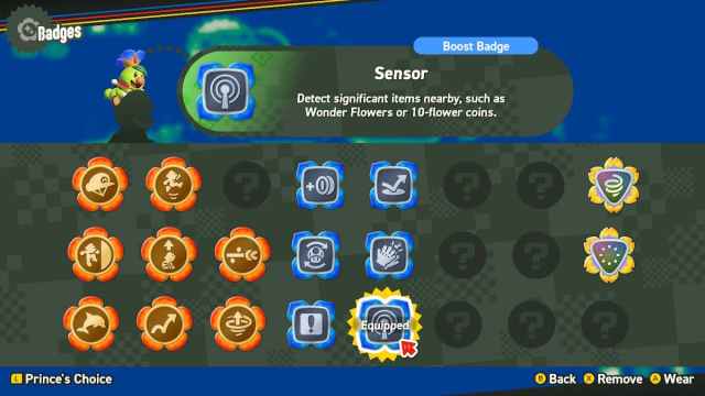 The Sensor Badge will detect any nearby important objects like Wonder Flowers or 10-Flower coins. Some levels have well hidden collectibles that can be hard to find. This would’ve been nice to have when I played through Puzzling Park for the first time. Â