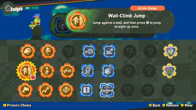 The Wall-Climb Jump Badge lets you jump against a wall and then jump once again straight up. This is perfect for getting that verticality to reach the top of levels or flag poles. This badge is great for finding secrets that can be hard to reach.
