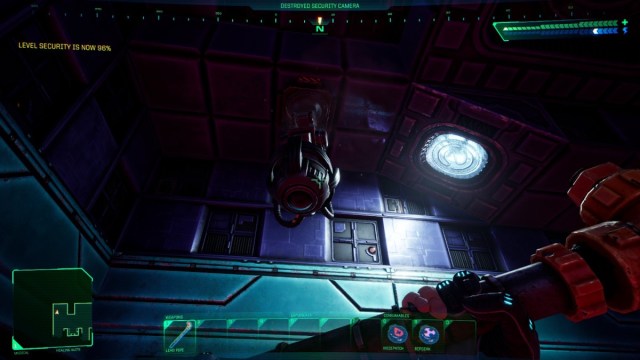 Your real goal is to destroy the Medical Deck’s CPU Nodes, as well as all the cameras you can find. Once you’ve lowered the level’s security enough (below), you can find and use an elevator to escape Medical.