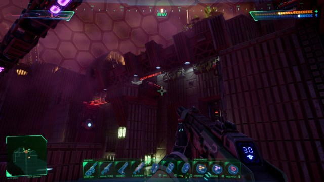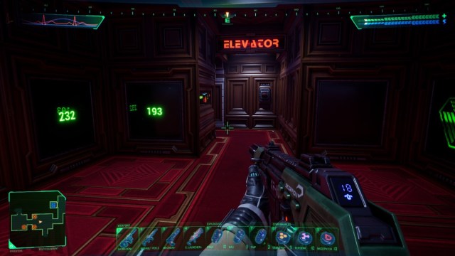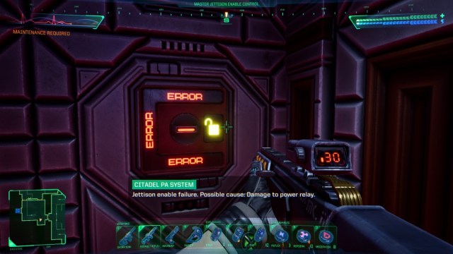 That’s arguably the toughest challenge in System Shock so far, especially when you don’t know it’s coming. There’s at least one more sequence like it in the game, where you’ll need to keep your Enviro-Pack powered in a hazardous environment, so don’t start randomly burning your Electric Packs just yet.