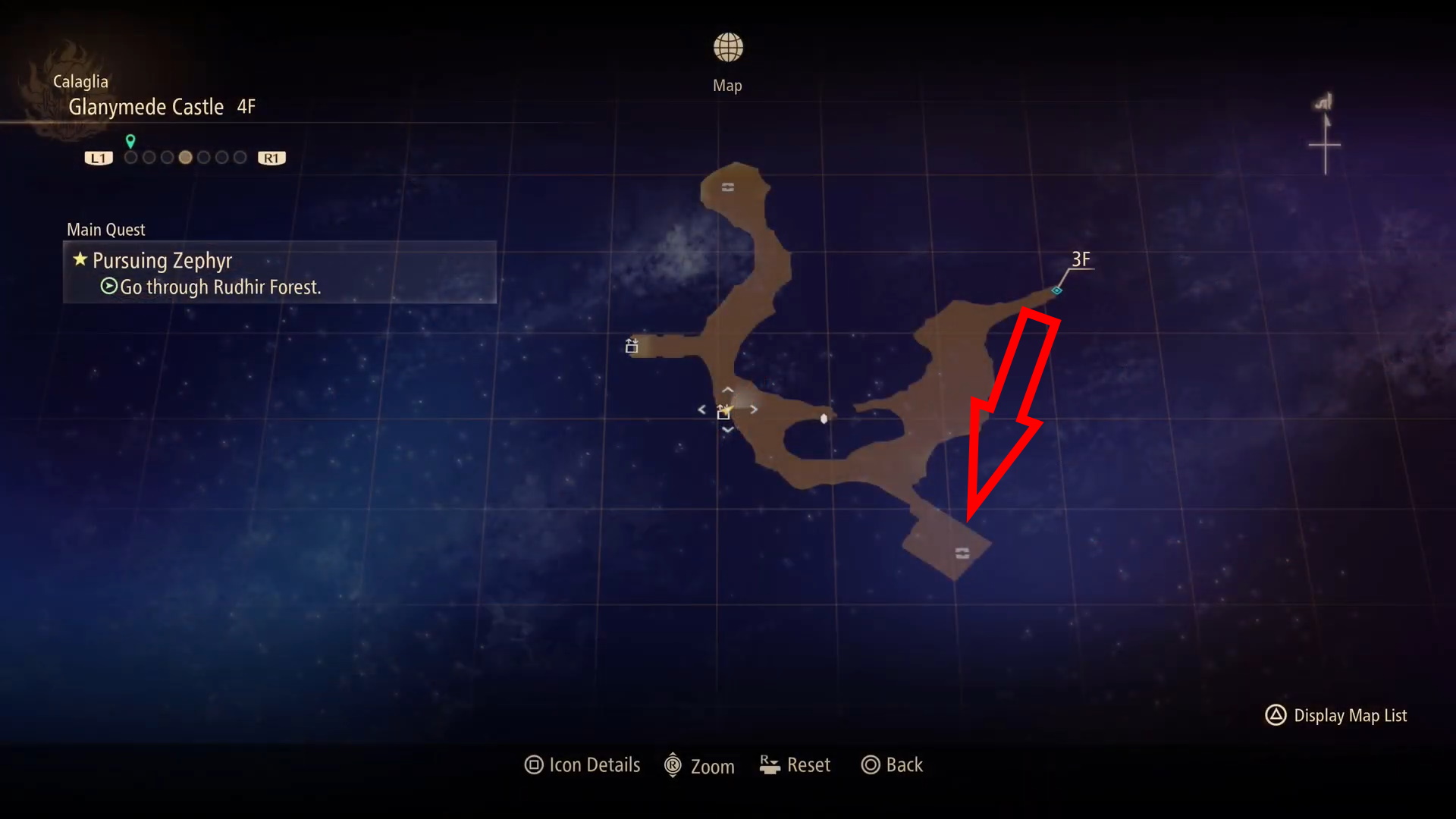Ignore the super-strong Zeugle rolling around the fourth-floor entrance since it’ll kill you in one hit, and make your way to the spot indicated on the map image below.