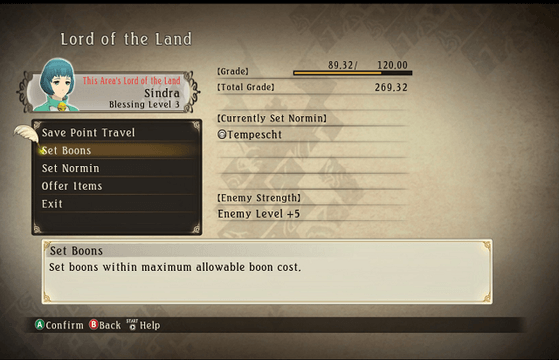 A new feature in Tales of Zestiria is the ability to set up a Lord of the Land for each area. This allows you several benefits, including save point travel and detecting hellions. You even get access to Normin, small creatures with abilities, later in the story.