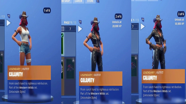 The second half of styles for Calamity are more detailed but also more difficult to receive. The fourth style adds teal accents, shotgun shells along with her belt, and a poncho to complete the western look. You will need 90,000 XP for this one though.