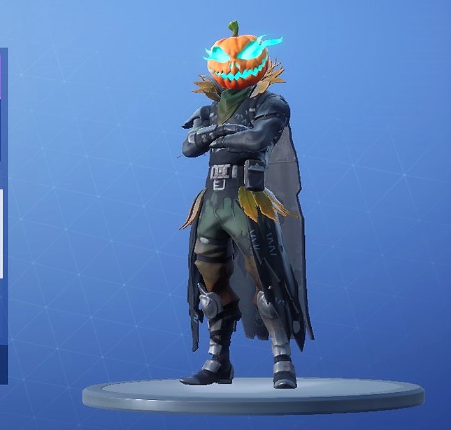 This hilarious skin features a man in a black, pumpkin covered suit and a carved pumpkin head. His completely unimpressed facial expression is perfect for frustrating your opponents and is ridiculous when paired with extravagant emotes and dances like Orange Justice, Llama Bell, and Floss.