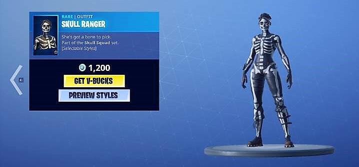 She also has a version where her bone outline glows green. Acquiring both the Skull Ranger skin and the Skull Trooper skin will complete the skull set and give you the opportunity to be even more festive this Halloween in Fortnite.