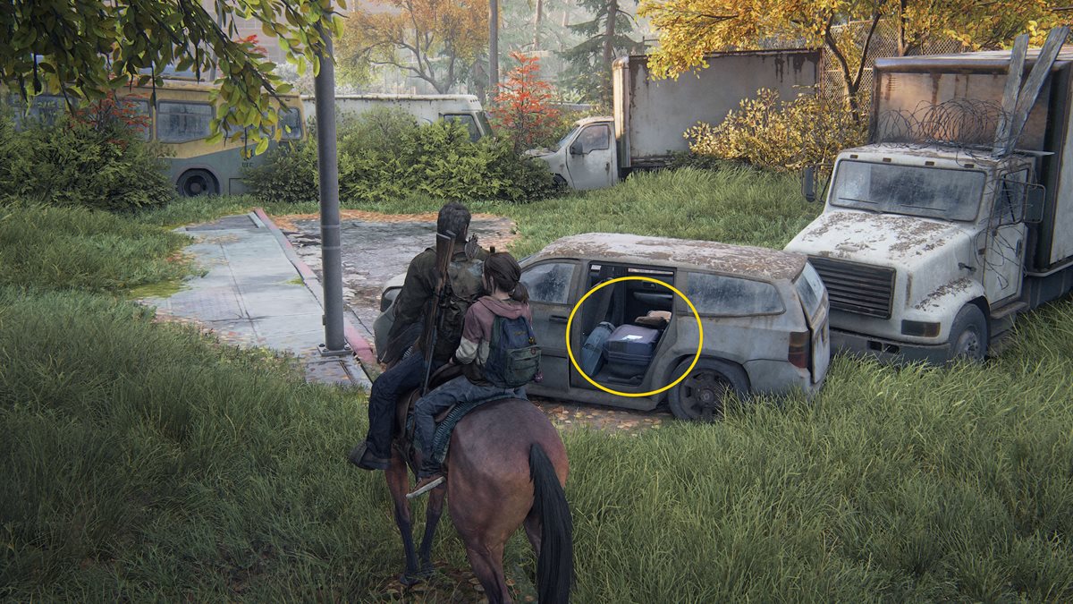 When this chapter begins, backtrack up the sloping road until you see a car. There’s a collectible here that you can pick up.