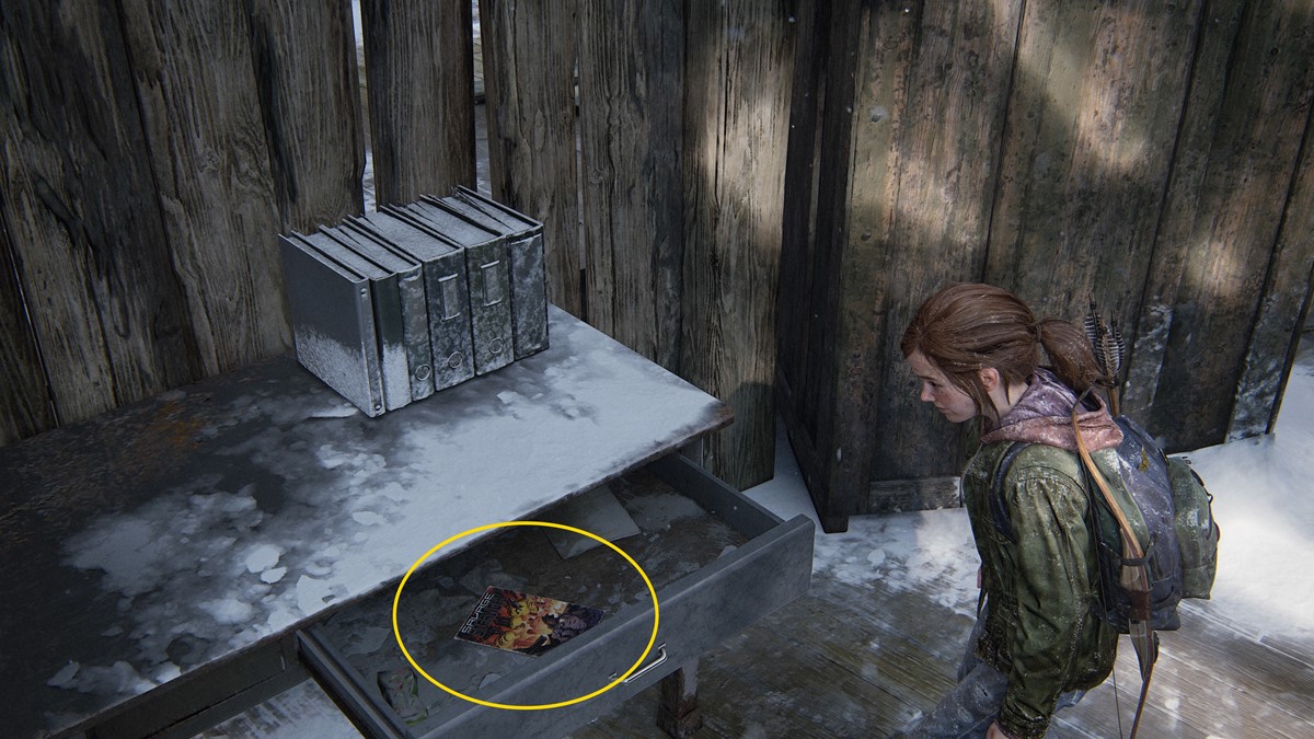 The next couple of Comic Books in The Last of Us Part 1 are found while you’re controlling Ellie. After shooting the deer, you’ll reach an abandoned hut with a Warren Coral Mining sign. You’ll find this item inside a drawer.