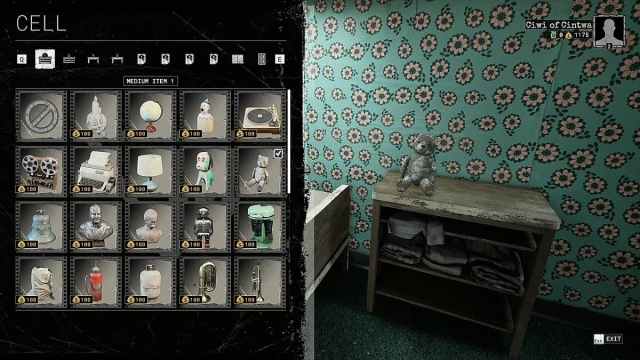 Interact with the bed in your cell, and you’ll be presented with plenty of customization options. Like with the character customization options, you’ll notice that there are prices on items for your cell.