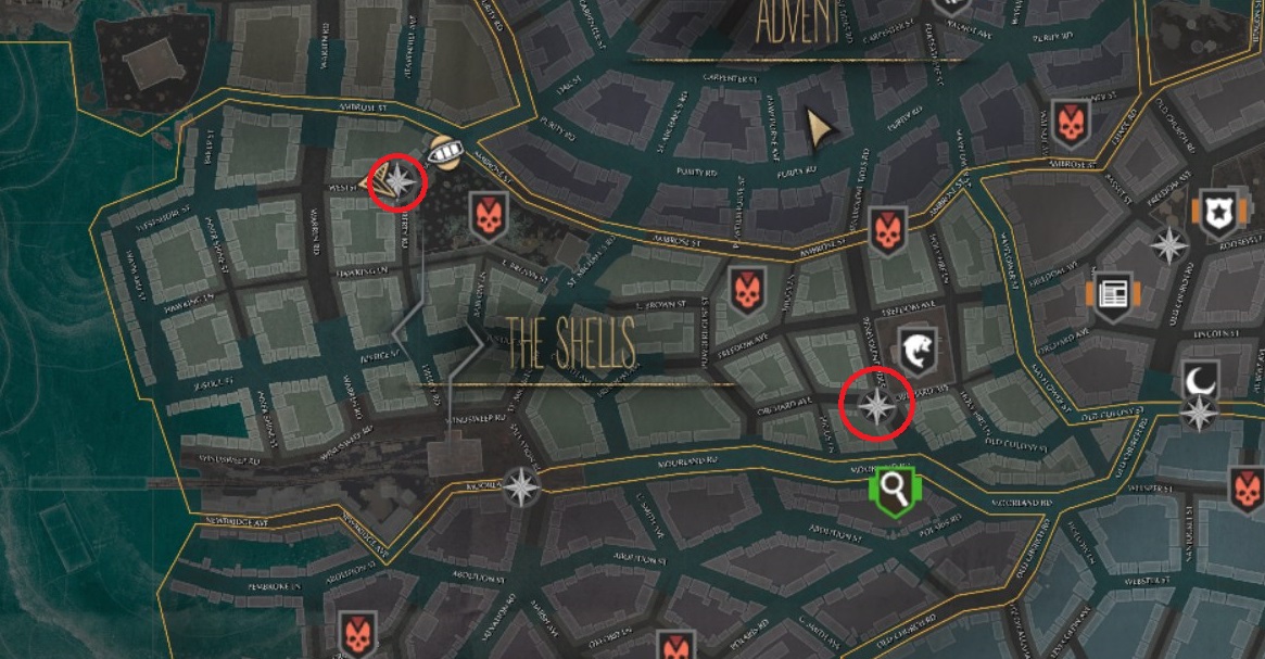- The Shell East: Found at the intersection of Benevolent Tides Road and Orchard Ave on the southwest corner of the Fish Market and just north of the flooded Moorland Road border with Salvation Harbor.
