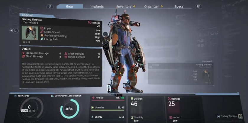 - Firebug Throttle — acquire the updated version by severing all the Firebug’s limbs before landing the kill in the boss fight