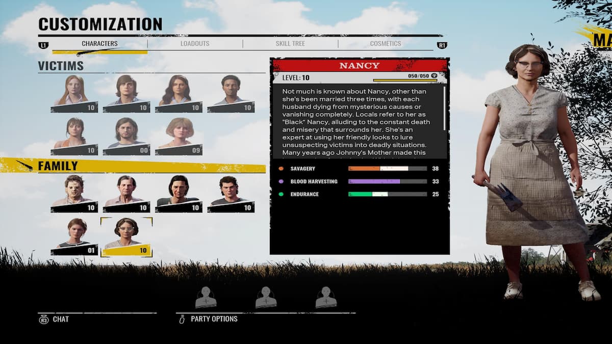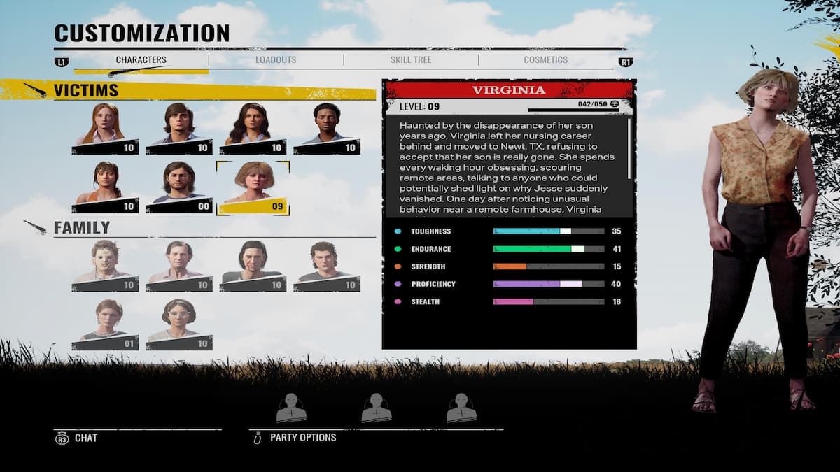 This guide, breaks down all of the character abilities in The Texas Chain Saw Massacre by character grouping: the Victims and the Family. The different levels in their Ability Unlock Tree will also be listed. Use the below link lists to jump to a specific character.