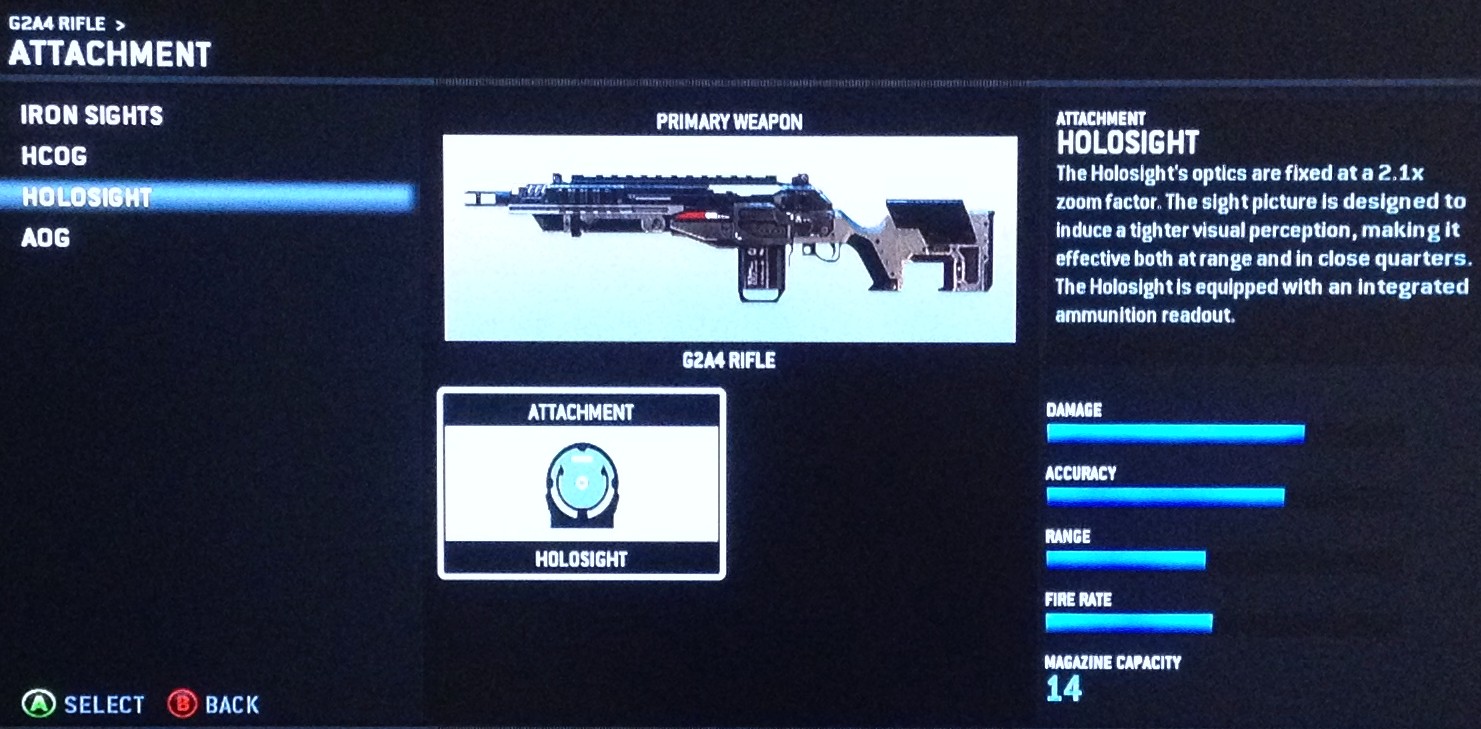 The Holosight is good for a balance in range and close combat. It has a 2.1x magnification and provides a tighter aim than normal.