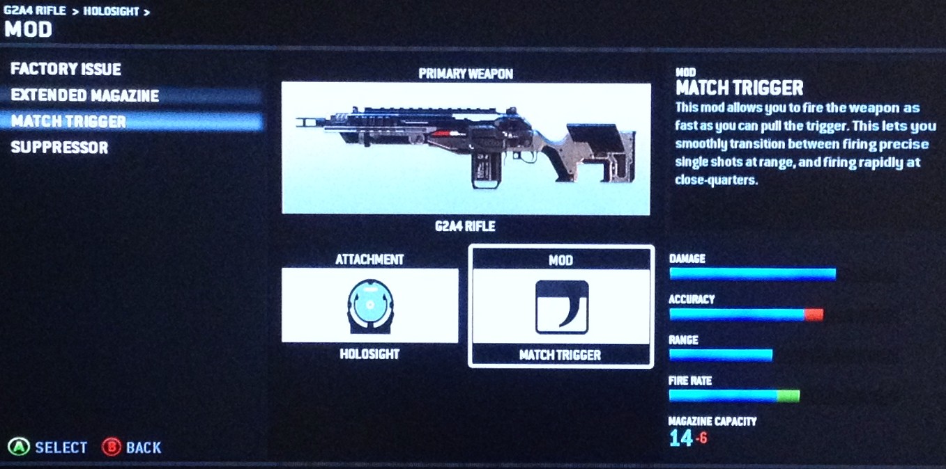 The G2A4 is a semi-automatic rifle in Titanfall. It shoots pretty quickly and a mod increases the rate of fire even more. With attachments and the right mod, this gun is deadly at multiple ranges.