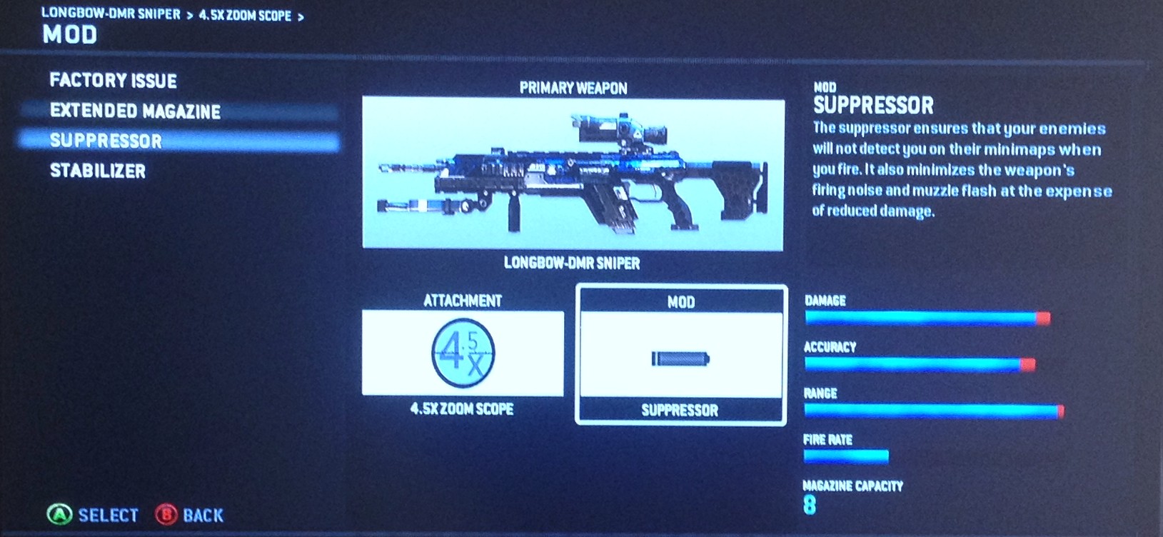This lowers the overall damage, but you will not show up on enemy minimaps when firing. It also reduces the noise and muzzle flash of the gun. Decent when you want to go unnoticed during an objective-based game.