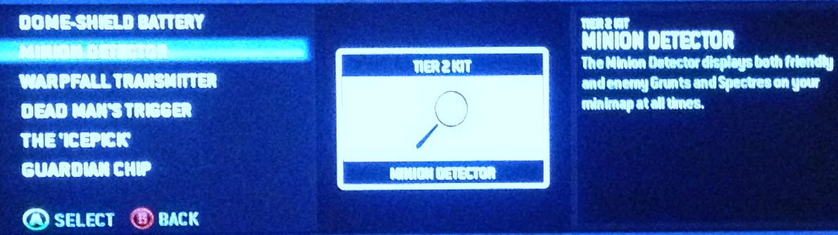 When doing objective based games, Guardian Chip is a good choice for Tier Kit 2. Minion Detector is not helpful unless trying to complete challenges or doing Attrition.