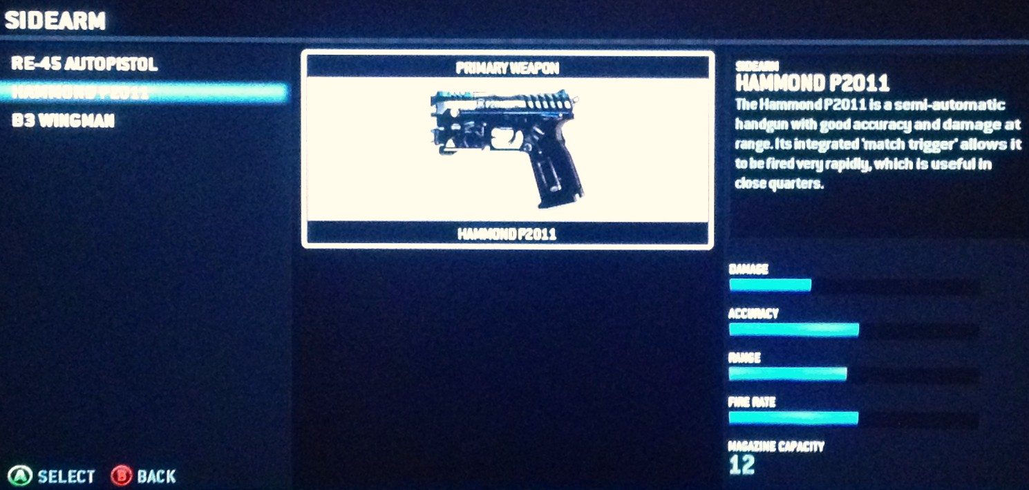 I chose the Hammond P2011 to round out this loadout without sacrificing too much speed. The B3 Wingman is strong, but slow firing rate. You don't want to slow down much. The RE-45 Autopistol is fast, but your primary weapon is already and extremely fast weapon.